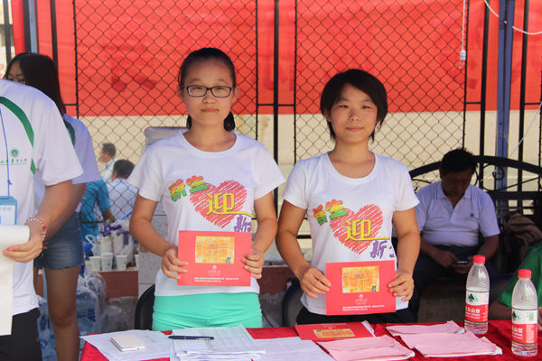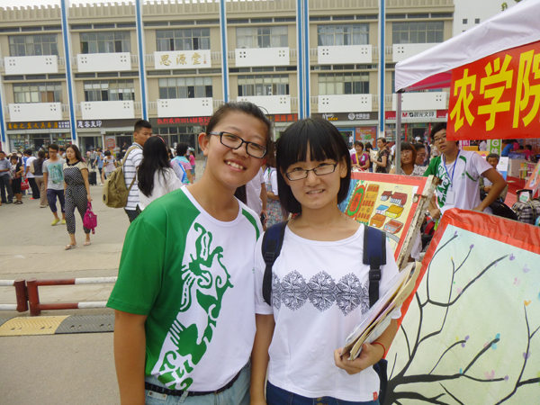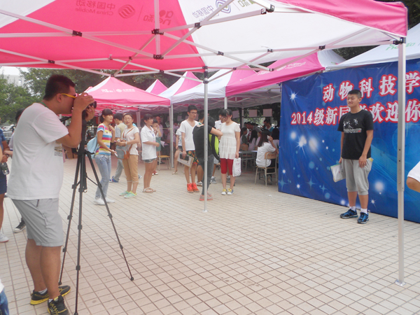 志愿者为新同学留念(动科学院供稿)