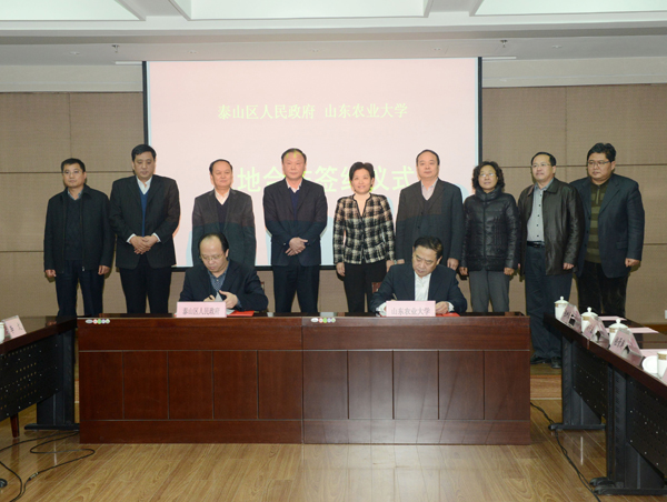 12月9日,我校与泰山区人民政府签订土地合作协议,校长温孚江、泰山区区长赵斌在协议上签字。学校领导邢善萍、车先礼、朱莉、嵇景涛、吴衍涛,泰山区领导宋洪银、李殿勤、毕华年等参加签字仪式。