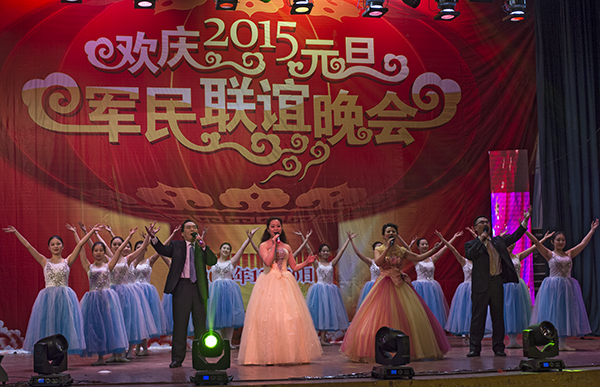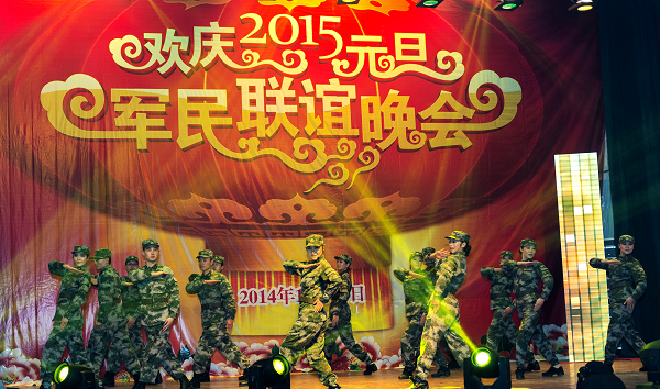 12月30日晚,欢庆2015元旦军民联谊晚会在北校区礼堂隆重举行,农大师生与解放军第八十八医院的领导和医护人员欢聚一堂,喜迎2015年新年。