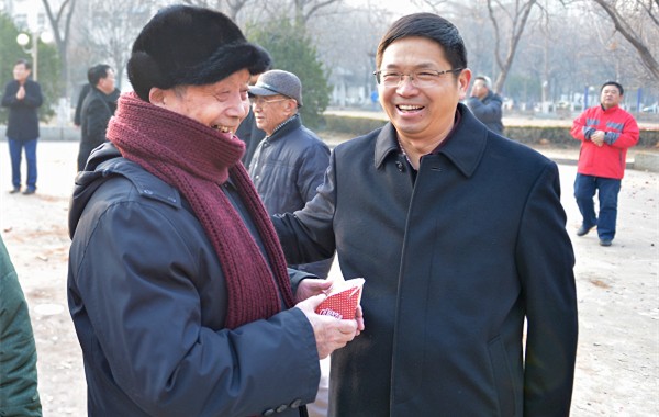 金灿灿的阳光洒满大地,给节日的校园增添了温暖喜庆气氛。教职工和离退休老同志们欢聚一堂,热烈握手,亲切交谈,表达心中美好的祝福。学校领导董新胜、车先礼、张宪省、嵇景涛和大家一起共贺羊年新春。