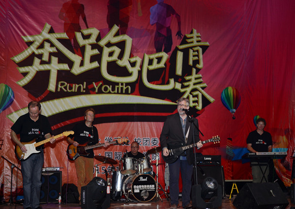 在晚上举行的国际交流学院《奔跑吧,青春》迎新晚会上,FOM校长ALl STAR乐队的表演成为最火的节目,让国交学院的年轻学生热血沸腾,不停尖叫欢呼。校长温孚江的中英文演唱也让现场的快乐气氛冲向新高点。