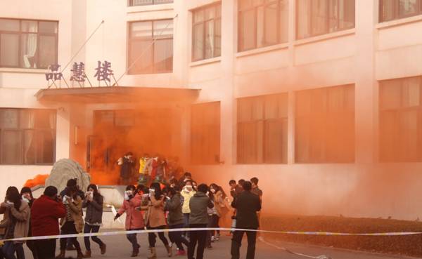 消防演练分别由机电学院、经管学院承办。