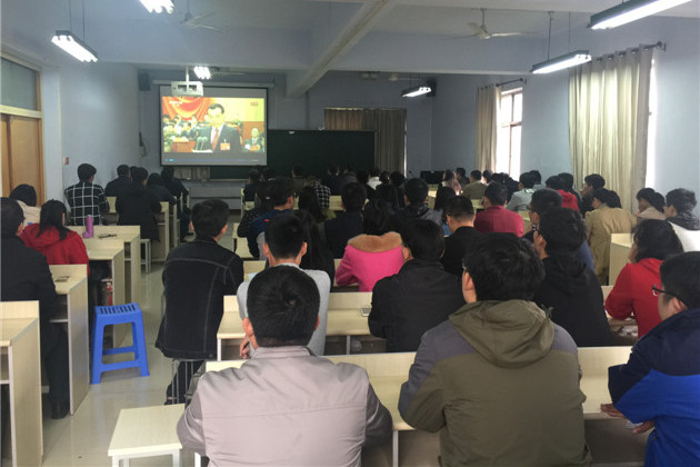 机电学院党委书记于学勤带领学院全体党员和入党积极分子一起聆听了习近平总书记的大会报告。他表示,报告内涵十分丰富,是马克思主义中国化的最新理论成果,也是推进国家改革建设发展的行动纲领。作为高校的基层党建工作者,一定要努力把十九大精神学深学透,坚决贯彻落实上级党组织的决策部署,勇于担起管党治党的第一责任,不断创新工作方式方法,以更加强烈的责任感使命感,为学校发展建设、为办好人民满意的高等教育做出自己的贡献。