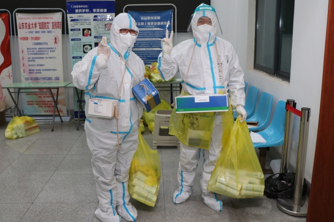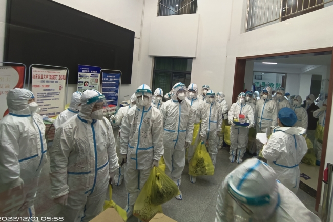 11月27日,岱宗校区全员核酸检测出现异常情况,学校立即启动疫情防控应急处置预案,“校园大白”即刻到位,迅速投入到工作当中。面对疫情,每位医护人员都毫不畏惧,深入学生宿舍、实验室、教室,争做坚守一线的冲锋者,勇当疫情防控的“守门员”和“服务员”,用实际行动共筑疫情防线。