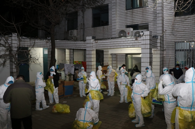 白衣执甲,逆行校园。寒潮来袭,他们的腿被冻得难以站立。工作量大,厚厚的防护服内已被汗水浸透。“大白”们的脸因为长时间戴口罩被勒出了深深的印痕,而防护面罩下的一双双眼睛,透露出来的,是挺身而出的勇气,是汗水浸润的坚忍,也是携手抗疫的初心!
