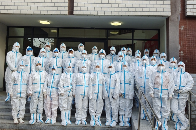 当我带着简单的行李离开家时,我落泪了,一边是老人和孩子,一边是需要我的工作岗位。但是我没有胆怯,是坚强的意志充斥着我的头脑:身为医者,治病救人责无旁贷;身为战士,我们理应站在最前沿!脸上挂着深深的口罩印、面屏下的琉璃冰、冻得没有知觉的手指在我身上都不值一提,因为我是共产党员,是这颗火热的红心激励着我。黑夜过后就是黎明,分离之后就是团圆,我们所有医务人员相互协作,彼此激励,攻克难关,我坚信一定会逾越病毒,春天一定会到来!——程平