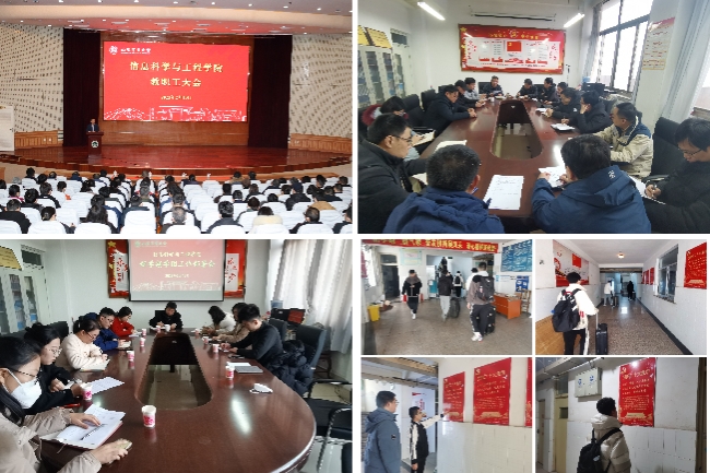 实干笃行,蓄势启新。开学前夕,信息学院组织教职员工围绕学科发展、科研团队建设、学科竞赛、学风建设、就业创业、学生管理等重点工作积极做好开学前的各项准备工作,全力为新学期起好步积攒新动能。学院还充分发挥大学生社区文化育人功能,依托学生社区中心,更新社区党建文化长廊,制作党的二十大报告学习解读、优秀学子思想感悟等专栏,将思政课堂搬进了学生社区。