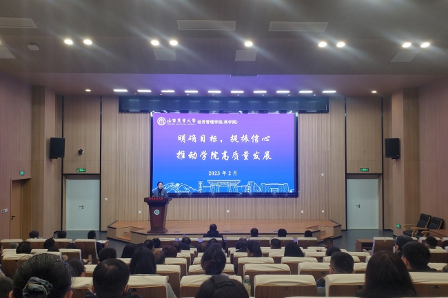 2月17日,经济管理学院(商学院)召开全体教职工大会,学院党委书记齐清作了题为“明确目标,提振信心,推动学院高质量发展”的主题报告。报告总结了2022年学院在教育教学、研究生培养、本科生教育管理、科学研究、社会服务等方面取得的成绩,同时分析了学院在高水平学科建设,教学项目、国家基金项目申报等方面存在的差距。
