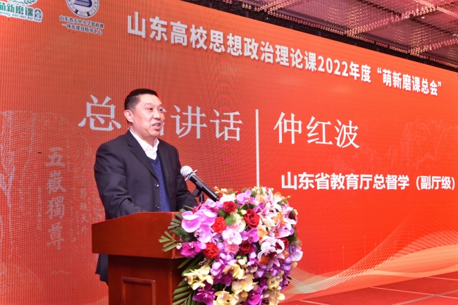 仲红波在讲话中充分肯定我省学校思政课建设取得的成绩,并从坚持用习近平新时代中国特色社会主义思想铸魂育人、启动思政“金课”建设工程、打造“大思政课”的“山东样板”、加大培育“名师”力度等方面,指出2023年需要全力抓好的重点工作。他说,学习贯彻党的二十大精神是今年思政课建设的首要任务,要通过集体备课、研课磨课、课件推广等方式,推动党的二十大精神全面贯穿、有机融入思政课教学。同时,广大思政课教师要认真学习、自觉践行习近平总书记在学校思政课教师座谈会上的重要讲话精神,争做马克思主义坚定信仰者、忠实实践者和积极传播者,把好“政治关”,把好“教学关”,把好“素质关”,扎扎实实、脚踏实地把教学搞好,把道理讲深、讲透、讲活,让学生真心喜爱、终身受益、毕生难忘。