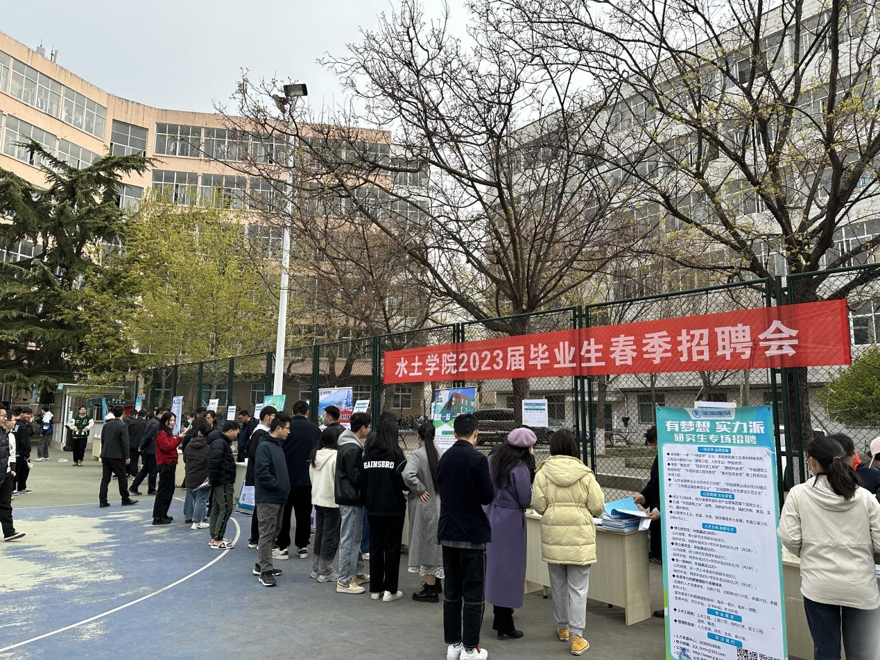 为深化校企合作,拓宽毕业生就业渠道,帮助毕业生充分就业,3月24日上午,水土学院2023届毕业生春季小型常态化招聘会在岱宗校区东篮球场火热开场。本次招聘会共邀请了山东三箭集团、中铁十局、中国十九冶、山东龙跃兴设计集团有限公司等16家优质企业,为毕业生提供就业岗位200余个。学院负责人和专业主任到现场与用人单位和毕业生交流。