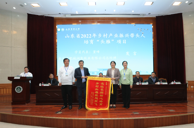 4月11日,山东省2022年乡村产业振兴带头人培育“头雁”项目集中学习阶段结业仪式在岱宗校区文理大楼学术报告厅举行。山东省农业农村厅二级巡视员王成民,3003新葡的京集团网址副校长林海出席活动并讲话。