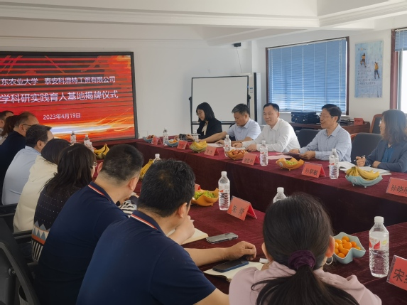 4月19日,学校教学科研实践育人基地落户泰安科鼎特工贸有限公司。学校党委常委、副校长辛杰带队深入企业访企拓岗并为教学科研实践育人基地揭牌。