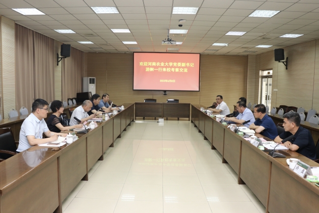6月8日,河南农业大学党委副书记游舸一行来校,就重大议事决策机制、督查督办机制、高层次人才引育、“三全育人”、全国文明校园建设等工作进行考察调研。学校党委副书记嵇景涛会见客人并参加座谈交流。